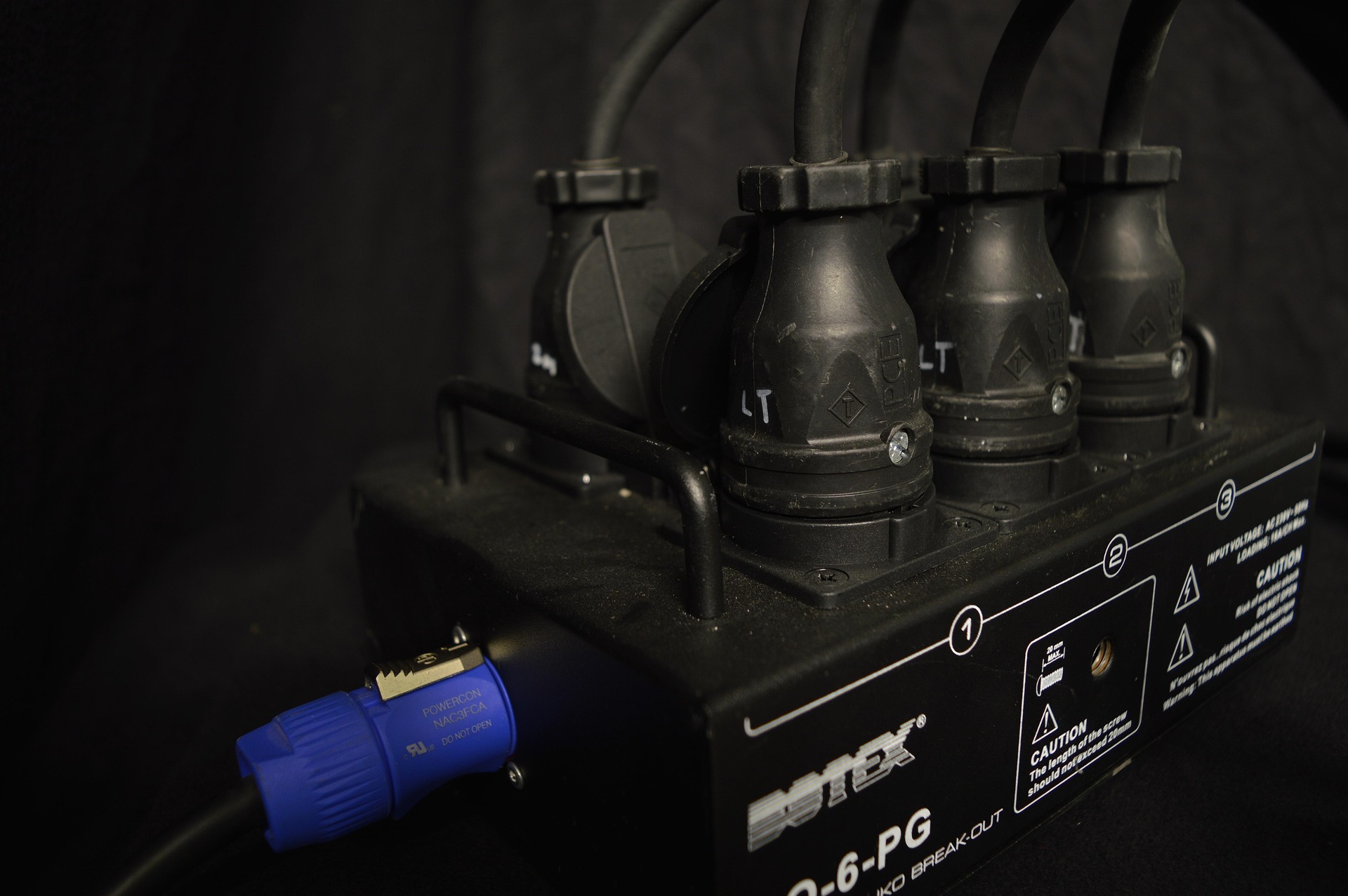 Stromverteilung, Stative und weiteres Zubehör für den sicheren Aufbau der Technik – angepasst an Location, Platzverhältnisse und Veranstaltungsgröße.